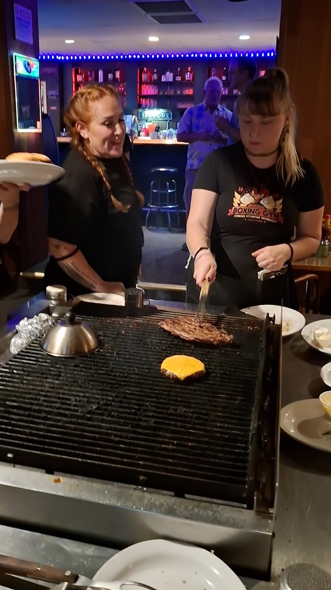 This is a place where the focus rests on honest food and genuine moments rather than polished presentation. The grill commands a central spot in the room, drawing you in with the sight and smell of steaks and burgers seared just right—a reminder of the craft behind every plate. Whether it’s the richly flavored burgers or a grilled halibut steak, the menu feels approachable and sincere, mirroring the kind of comfort you seek in a longtime neighborhood spot.